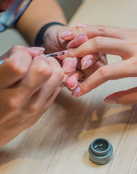 我們不會過度拋磨甲面,盡可能用軟化的方式去除指甲膠料